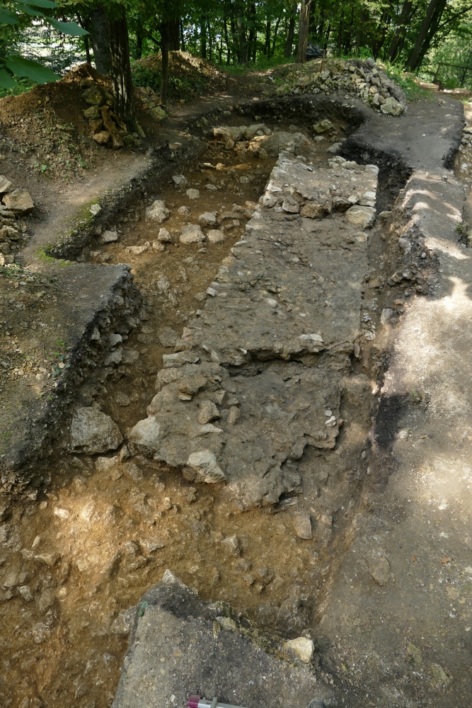 In den nördlich und südlich des Turmes angelegten Schnitten konnten wider Erwarten keine weiteren der Burg zuordenbaren Strukturen festgestellt werden. Zumindest für den südlichen Bereich kann angenommen werden, dass diese - sofern jemals tatsächlich vorhanden gewesen - dem Straßenbau zum Opfer gefallen sind.