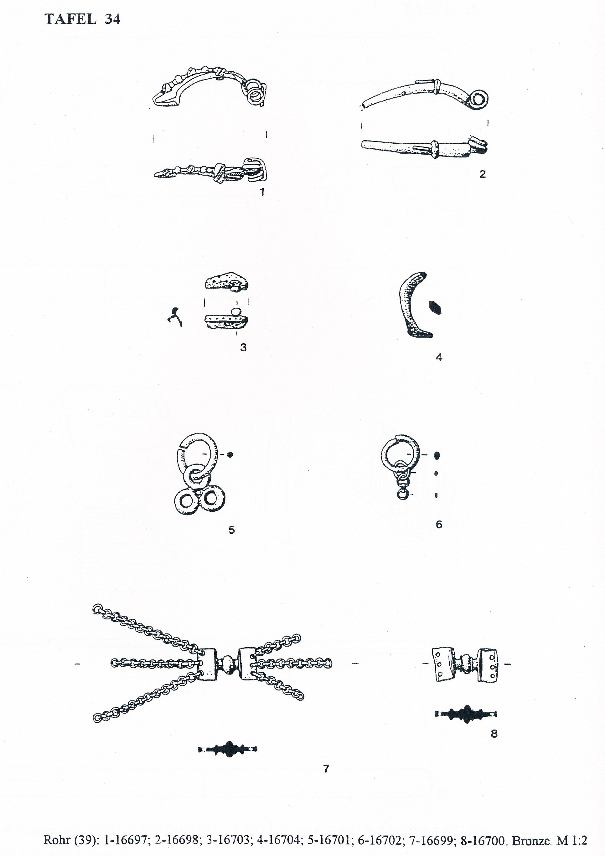 UMJ-Inv.Nr. 16705: Kettenrest aus Bronze; siehe Modrijan, SchvSt 8, 10. M. Kramer 1994 vermerkt, dass dieses Stück eventuell zu UMJ-Inv.Nr. 16699 oder 16700 gehört.